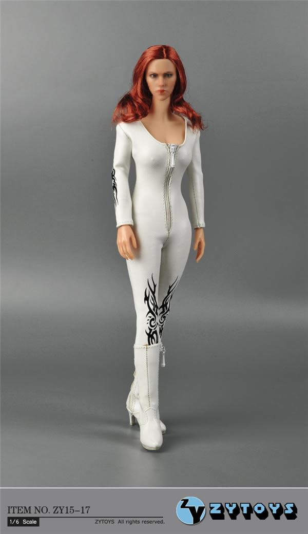 ZYTOYS - 1/6白色印花连体女装皮衣 (#.ZY15-17) 产品为是一套连体白色皮衣,不包括其它展示用的配件;